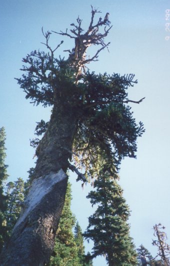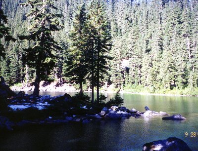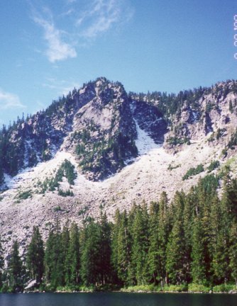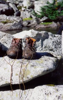 Here's a photo of my Danner Hiking Boots, which have lasted me 21 years and were more than adequate for this hike; which included a 2300 foot altitude gain and 9 miles of very rough terrain. Thanks Danner! | ![]() Sparkplug Mountain, Surprise Lake; Cascade Wilderness Area We were there! |